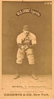 George D. Myers (1860-1926) was a Major League Baseball player. He played six seasons in the majors, from 1884 until 1889, for the Buffalo Bisons, St. Louis Maroons, and Indianapolis Hoosiers.