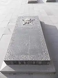 Gevorg VI is buried near the Mother Cathedral of Holy Ejmiatsin.