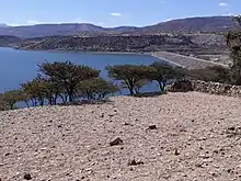 Though the reservoir was not intended for irrigation, its seepage water is used in the downstream valley for irrigation. The lithology of the catchment is Antalo Limestone.[2] Part of the water is lost through seepage;[3] the positive side-effect is that this contributes to groundwater recharge,[4] and it allows irrigation by the downstream communities.