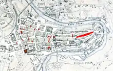 On the eastern end, the streetscape was altered by the slighting of Nydegg Castle in 1270, the demolition of other fortifications until 1405 and several excavations of the roadbed until 1764 to reduce the street's downward slope.[9] In 2005, the street was thoroughly renovated and its cobblestone pavement replaced. The city ditch (Stadtbach) running through the middle of the street since medieval times is now visible again through metal gratings.[10]