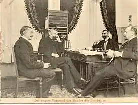 The inaugural meeting of the Bund der Landwirte was held in the Berlin Tivoli Brewery and was attended by some ten thousand people.[7] It drew its support from the most Protestant areas of the empire, northern and central Germany, and particularly from Prussia. In May 1893, just three months after its establishment, it campaigned for farmers' rights and won over 140 of the deputies who were elected in July, or about one-third of the members of the Reichstag, including the influential group that would found the Economic Association (Wirtschaftliche Vereinigung) some years later with Wilhelm von Kardorff, Berthold von Ploetz and Diederich Hahn.[8][9]
