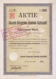 The Gernrode-Harzgerode Railway Company was founded on 10 May 1886 with the aim of developing the East Harz by means of a small scale railway line. After the experience of the Felda Railway in Thuringia it was decided on cost grounds that a concession would be granted in March 1887 for a 1,000 mm (3 ft 3+3⁄8 in) metre gauge line from Gernrode to Harzgerode and Silberhütte. Gernrode had already had a railway connexion since 1885.