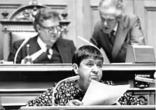 Her life was shaped by her political commitment. She sat in the Citizens' Council of Basel, campaigned for women's suffrage in Switzerland, and joined the Grand Council of Basel in 1968. She became the first female Statthalter of the city of Basel in 1974,[2] and the first female speaker of the Grand Council of the canton of Basel-Stadt.[3] Moreover, she was a member of the National Council from 1975 to 1983.[4] Her fields of interest included social and education policy.[1]