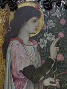 Spencer-Stanhope is also thought to have been the artist who painted the panels for the pulpit in Christ Church, Isle of Dogs. The work shows the influence of her uncle's pulpit panels in St. James the Great Church, Flockton, Wakefield; two panels appear to be imitations, with the third taking a more definably original approach. (The painted mural over the chancel arch is tentatively credited to John Roddam.) Gertrude had given the pulpit, installed in 1907, in memory of her brother Edward, but the particular connection of the Spencer-Stanhope family to Christ Church is unknown.[7]