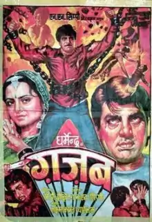 Ghazab (transl. Amazing) is a 1982 Indian Hindi-language action comedy-drama film starring Dharmendra and Rekha. The film was a remake of the Tamil film Kalyanaraman.[2] The movie was a 'Hit' and the performance of Dharmendra was critically acclaimed.