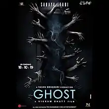 Ghost is a 2019 Indian horror thriller film written and directed by Vikram Bhatt and produced by Vashu Bhagnani Production. The film bankrolled by Loneranger Productions, features Sanaya Irani and Shivam Bhaargava in the lead roles. The story of the film follows Karan Khanna (played by Bhaargava), a politician of Indian origin in the United Kingdom, who is accused of killing his wife. He tells his lawyer that a spirit committed the murder and should be tried. [3][4] Principal photography commenced in November 2018 in London.[5] It was released on 18 October 2019.[6]