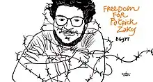 Gianluca Costantini was the creator of the iconic image associated with the Patrick Zaki case, with the drawing being published on February 7, 2002, the day of Zaki's arrest.[10] For two years, the drawing was utilized as part of Amnesty International's liberation campaign and was featured in large installations across Italian cities. In may 2020, Mayor Virginio Merola of Bologna had reproduction of the drawing installed in Piazza Maggiore. In the same month, a significant installation at the Archiginnasio Library was commissioned by the University of Bologna. In 2022, Gianluca Costantini published a graphic novel written by Laura Cappon, titled "Patrick Zaki, una storia egiziana," released by Feltrinelli Editore.