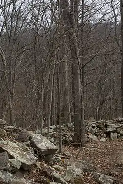 The Giant City Stone Fort Site is the site of a prehistoric stone enclosure located within Giant City State Park in Jackson County, Illinois, United States. The Stone Fort dates to the Late Woodland period and was constructed and used in the period from c. AD 600–900; it is one of ten such sites known in Southern Illinois. All ten were constructed atop either promontories or hilltops; the Giant City site is in the former group, as it sits atop a sloped ridge. The purpose of these enclosures is unclear; while archaeologists originally theorized that they were military fortifications, the present archaeological consensus suggests that the sites were used as meeting places or ceremonial locations of some nature.[2]