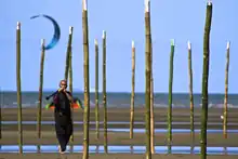 The installation was created out of 152 local untreated bamboo poles placed on the shore at low tide. Native Australian musician Tjupurru was playing the didgeridoo while walking through the installation. The public was able to walk between the bamboo poles, without having any concept of the form taking shape.[3]