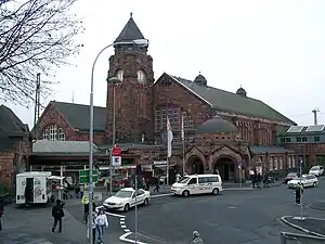 Gießen railway station (German: Bahnhof Gießen) is the main railway station in Gießen, Hesse, Germany. The station is a Category 2 station is used by 20,000 passengers daily. The station was opened on 25 August 1850 and is located on the Main-Weser Railway (Kassel – Frankfurt (Main)) and Dill railway (Siegen – Gießen). The current station reception building was built between 1904 and 1911. The main original station building is a historic landmark and has been protected. Outside the station is a bus station and a taxi rank . Parking garages are located nearby.