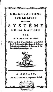 His son Frederick Salvemini de Castillon (1747-1814) also became a member Berlin Academy and was a writer for Diderot's Encyclopédie.[8][9]