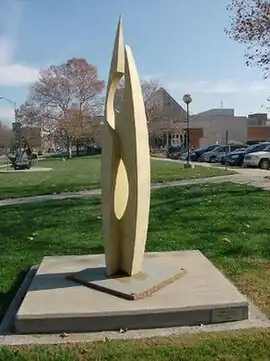 A Museum Studies course at IUPUI recently undertook the project of researching and reporting on the condition of 40 outdoor sculptures on the university campus. Give and Take was included in this movement.[2] This documentation was influenced by the successful Save Outdoor Sculpture! 1989 campaign organized by Heritage Preservation: The National Institute of Conservation partnered with the Smithsonian Institution, specifically the Smithsonian American Art Museum. Throughout the 1990s, over 7,000 volunteers nationwide have cataloged and assessed the condition of over 30,000 publicly accessible statues, monuments, and sculptures installed as outdoor public art across the United States.[3]