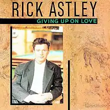 "Giving Up on Love'" is a song written and recorded by English singer Rick Astley. It was produced by Daize Washbourn with Astley. The song was recorded for Astley's second album, Hold Me in Your Arms. The single peaked at number 38 in US Billboard charts. Never released as a single in the UK, this North American-only single was issued just prior to Astley's US tour.