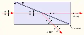 Traditionally Canada balsam was used as the cement in assembling these prisms, but this has largely been replaced by synthetic polymers.[1]