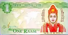 Raam is a bearer bond and local currency issued by the Global Country of World Peace.[10] It was designed for the development of agricultural projects and to combat poverty in third world countries.[10] As of 2003, it had limited acceptance in some European and U.S. cities. The currency has been used in Iowa and has been also given approval in The Netherlands where more than 100 Dutch shops, department store chains, in 30 villages and cities, are using the notes at a fixed rate of 10 euros per raam.[10]