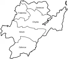 Gmina Chybie contains the villages and settlements of Chybie, Frelichów, Mnich, Zaborze and Zarzecze.