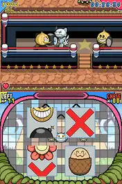 The goal of each stage is to clear the map of all the peaceful enemy characters, many of which will not attack until provoked. The player takes control of Kokopolo (or Tatsumo) who can stroll around the stages with the D-Pad, or dash quickly around the stage with one of the shoulder buttons. Knowing when to walk, and when to dash, is actually a key component of this game. The player can also jump with the A button, or scratch with the B button. All of these actions take place on the top screen.