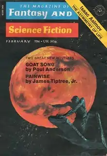 "Goat Song" is a science fiction novelette by American writer Poul Anderson. Originally published in The Magazine of Fantasy and Science Fiction issue of February 1972, it was later included in the anthologies Nebula Award Stories Eight and The Hugo Winners Volume 3,[1] as well as in Anderson's collection Homeward and Beyond.[2]