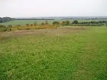 The earliest mention of the name Gog Magog for this region is found in a decree of 1574, forbidding students to visit the Gog Magog Hills on pain of a fine.[1] Random excavations around the hills revealed the remains of defences at Copley Hill and Cherry Hinton, not older than the Iron Age but the sites themselves are now known already to have been occupied in the Bronze Age.[2] The better-preserved hill fort known as the Wandlebury Ring, which is now situated in a public park, had several concentric ditches and earthen walls, which were kept in place by wooden palisades. It was already inhabited in the Bronze Age[3] and archaeological finds include bronze and iron objects and pottery, including "Knobbed Ware", dating from the Bronze Age.