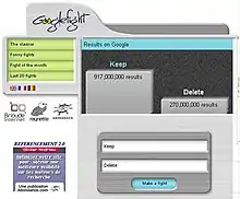 Googlefight was a website that output a comparison of the number of search results returned by Google for two queries, presented as the result of a fight. It was a project of Abondance, the company of Olivier Andrieu.[1]