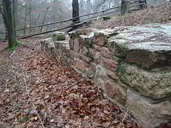 In 1904, the Aschaffenburg chemist, Deinlein, carried out the first excavations on the Gräfenberg. Today there are the wall foundations of a rectangular building, a five-metre-long and 1.8-metre-side longitudinal wall, a four-metre-long and 0.4-metre-wide transverse wall which abuts on another wall that has yet to be uncovered. Also recognisable are elements of a vaulted ceiling and a circular wall that could be a cistern or a dungeon.[1]