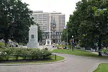 Keating's plan also specified a circular fountain that was not built until 1905. It was removed to make way for the Cenotaph, officially unveiled on July 1, 1929 by Sir Robert Borden.[2] The Cenotaph, honouring Canada's war dead, was designed by Scottish sculptor J. Massey Rhind.