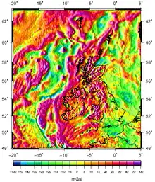 - ↑ British Geological Survey 1997, Gravity Anomaly Map of Britain, Ireland and Adjacent Areas, Smith & Edwards 1:500K