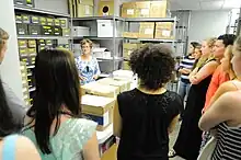 A group of high school students tours the Songbook Archives, which are adjacent to the Foundation's administrative headquarters.