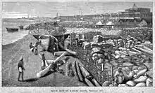 Grain destined for export stacked on Madras beaches (February 1877).