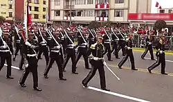 The historical segment leads the marchpast in quick time of the Peruvian Armed Forces (in several occasions several units marched in double time on the parade). In recent years however foreign contingents have led the parade together with reserve and indigenous military units and alumni from the Leoncio Prado Military Academy.