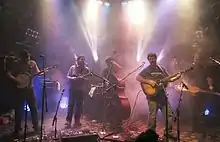Greensky Bluegrass is a five-piece American bluegrass jam band founded in Kalamazoo, Michigan in mid-2000. The band has evolved over the years, growing from 3 to 5 members, adding electric effects, and touring with a full light show. Partly because of their name, many articles written about the band address the fact that what Greensky does is "not quite" bluegrass. In their own promotional material, GSBG describes their sound as "their own version of bluegrass music, mixing the acoustic stomp of a string band with the rule-breaking spirit of rock & roll".[1]