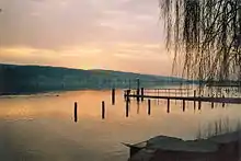 The lake was known as Glattsee (after the Glatt) in the medieval period[1] Greifensee (Grifense) was at first the name of the fort built by the counts of Rapperswil in the 12th century, recorded as the name of the bailiwick in 1260.[2] This was adopted as the name of the lake by the 16th century.[3]
