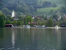 Located on the lakeshore, the Prehistoric pile dwelling settlement Greifensee–Storen–Wildsberg is part of the 56 Swiss sites of the UNESCO World Heritage Site Prehistoric pile dwellings around the Alps,[4] and the settlement is also listed in the Swiss inventory of cultural property of national and regional significance as a Class object.[5] Because the lake has grown in size over time, the original piles are now around 4 metres (13 ft) to 7 metres (23 ft) under the water level of 406 metres (1,332 ft).