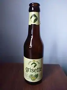 A grisette is a variety of beer originating from the mining regions along the border of France and Belgium. It is a close relative of other farmhouse ales of the region including saisons and bières de garde, though unlike those beers, which were prevalent among agricultural workers, grisettes were consumed primarily by miners. The name, which means "little grey one", may come from the name of the local grey-colored stone or from the grey frocks worn by the women who served the beer in local pubs.