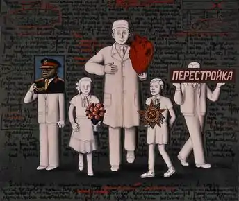Grisha Bruskin (born October 21, 1945)[1] is a Russian artist known as a painter, sculptor, and printmaker.