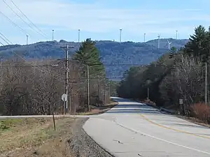 ![]() Groton Wind towers at north end of Fletcher Mountain, viewed from NH 25 | |
