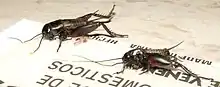 | Two northern wood crickets trapped on glue-based rat traps | |