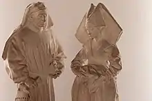Guigone de Salins is represented in Rogier van der Weyden's polyptych altarpiece Jugement dernier, which she and her husband commissioned. She is also depicted in a statue in the courtyard of the Hôtel-Dieu.
