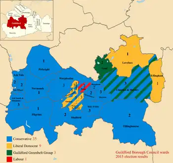 20. 1 2 "Guildford Borough Council election : Guildford Borough Council". Archived from the original on 18 May 2015. Retrieved 11 May 2015.