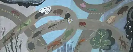 Ramos-Poquí belongs to the generation of Catalan artists of the 1960s who emigrated to Paris, London and New York, including fellow artists such as es:Antoni Llena, who also spent time in London, Antoni Miralda, Benet Rossell and Jaume Xifra. Ramos-Poquí’s works from this decade include a series of collages juxtaposing dynamic forms with the use of industrial spray paint to allude to mechanical progress. During the 60s he also produced a series of ‘found objects’ belonging to the consumer market, with which he created assemblages. They reveal the impact of Pop Art and the works of Rauschenberg on his work. The small scale and poetic associations of many of these assemblages from the 60s echo the Surrealist objects by Joan Miró and the boxes by Joseph Cornell, as pointed out by the author Gerald L. Bruns[4] and the art critic ca:Pilar Parcerisas i Colomer.[5] Other assemblages are more explicitly linked to a spirit of revolt. In September 1968 he staged an exhibition and installation of his Arte Povera 'found objects' displayed in boxes and Conceptual Art pieces, consisting of 'photographs of ideas', at the Arts Lab in Drury Lane, London. Because of these works he is considered, according to Catalan Art Critic and Historian ca:Alexandre Cirici i Pellicer, the forerunner of Arte Povera and Conceptual Art in Catalonia.[6]
