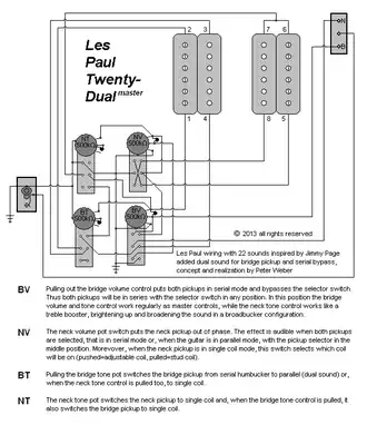 There are countless ways to modify the wiring of an electric guitar. Some of the more popular modifications are described below.