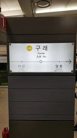 Gurae Station is a station on the Gimpo Goldline. It opened on September 28, 2019.[1]