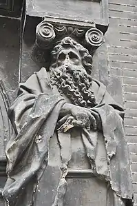 Historians are still debating the age of this emblematic portal of the Toulouse Renaissance: dated 1538 and attributed to Nicolas Bachelier for some, from the beginning of the 17th century and from the workshop of Pierre Souffron for others, a more recent publication now suggests the decade 1550 and a resemblance with engravings of the fireplaces of the Château de Madrid (destroyed).[2][3][4]