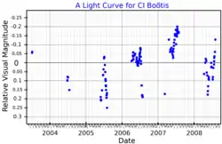 CI Boötes, BD+30°2513, HD126009, HIP 70236, SAO 83312.