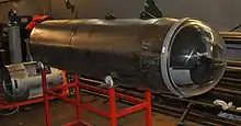 The Micro Spacecraft (MSC) had a steel pressure hull, and room for one passenger designed and built by Kristian von Bengtson who co-founded Copenhagen Suborbitals. The passenger was able to view the outside through a perspex dome.[1] The occupant flew in a half-standing/half-sitting position, in order to decrease the diameter of the spacecraft. The passenger sat in a specially designed seat, and would have worn anti-G trousers to avoid blackout. The heat shield was made of floor cork. Life support would have consisted of a diving rebreather derived CO2 scrubber and breathing O2 system. Another compartment contained both the high-speed drogue parachute and the low-speed main parachutes for deceleration. The sheer volume of the MSC provided the buoyancy in the water. Pressurized nitrogen would have been used for attitude control. The attitude thrusters were part of the non-pressurized volume of the spacecraft.