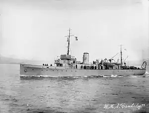 HMS Camberley was a Hunt class minesweeper of the Royal Navy from World War I. She operated as a tender at the Navigation School.