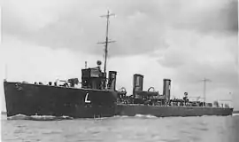 HMS Leonidas was a Laforey-class destroyer of the Royal Navy. She was launched on 30 October 1913. She served in World War I with the 3rd Destroyer Flotilla and as a convoy escort and was broken up in 1922. The ship was originally named Rob Roy but the name was changed after a new naming scheme was introduced to give all ships of the same class names beginning with the same letter. Overall cost of the ship was £100,000