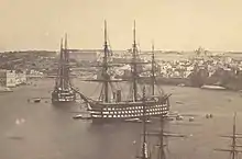 She served as flagship of the Mediterranean Fleet from 1858–64 (with the flag of Vice-Admiral William Fanshawe Martin, captain William Houston Stewart, from 3 May 1860 to 20 April 1863; and of Vice-Admiral Robert Smart, Captain Charles Fellowes, from 1863). In 1864 she was replaced as flagship by Victoria.