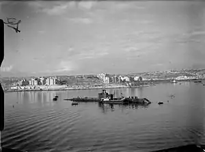 ![]() HMS Olympus taking in supplies in Manoel Creek, Grand Harbour, Malta, December 1941 | |