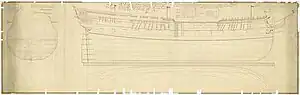 ![]() 1:48. Plan showing the body plan, sheer lines, and longitudinal half-breadth for Vanguard courtesy of the National Maritime Museum, Greenwich, London | |